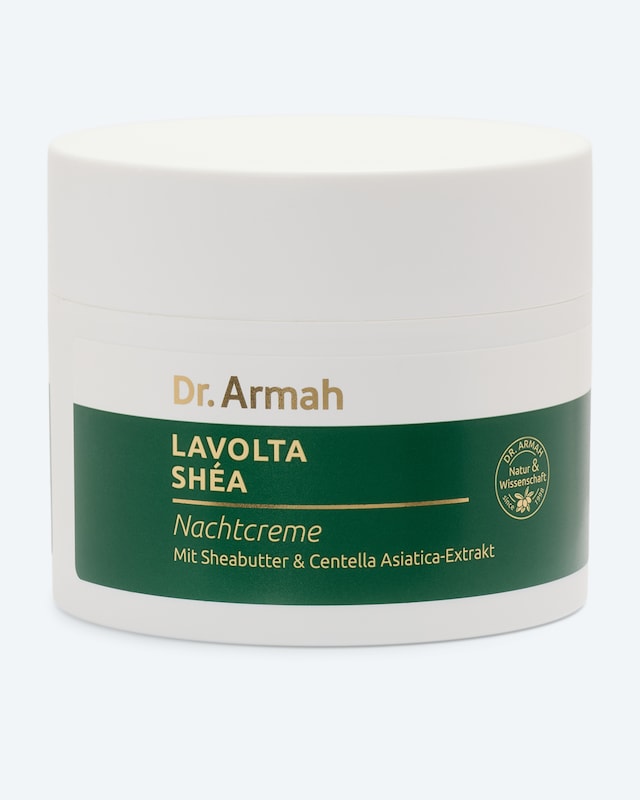 Die reichhaltige Lavolta Shea Nachtcreme mit beruhigendem Nachtkerzenöl und pflegender Sheabutter versorgt die Haut während der nächtlichen Regenerationsphase intensiv mit wertvollen Pflegestoffen und steigert das Wohlbefinden der Haut. Der spezielle Wirkstoffkomplex mit Centella Asiatica und Mispelextrakt verbessert die Spannkraft der Haut und beugt somit Faltenbildung vor.*[*in-vivo Studie zum Wirkstoff, 28 Tage, 2x tägliche Anwendung] Die Hautverträglichkeit der Creme ist dermatologisch bestätigt, sie ist zudem pH-hautneutral und parfumfrei.
