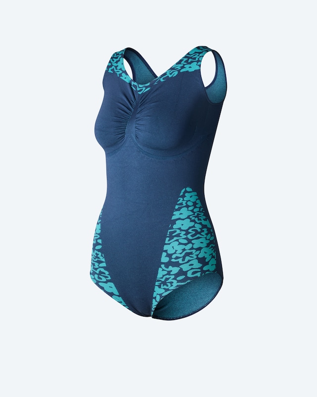 Dieser Badeanzug ist eine echte Augenweide. Das elegante Blumen-Design formt optisch eine schmale Taille und sieht toll aus. Die Push-up-Zone hebt Ihren Busen und die hoch geschnittene Slipform sorgt für einen flachen Bauch. Die breiten Komfortträger bieten guten Halt und schneiden nicht ein. Die atmungsaktive Bademode mit hygienischem Baumwollzwickel trocknet schnell und ist chlorresistent. Die funktionelle Rundstrickart mit speziell eingestrickten Zonen, formt und modelliert Ihre Figur sichtbar. Jedoch auf angenehme Art und Weise, da das Multifaser-Komfortgarn Sie nicht einengt. Dank der Bi-Elastizität sitzt der Badeanzug mit der Stützkraft 3 superkomfortabel.