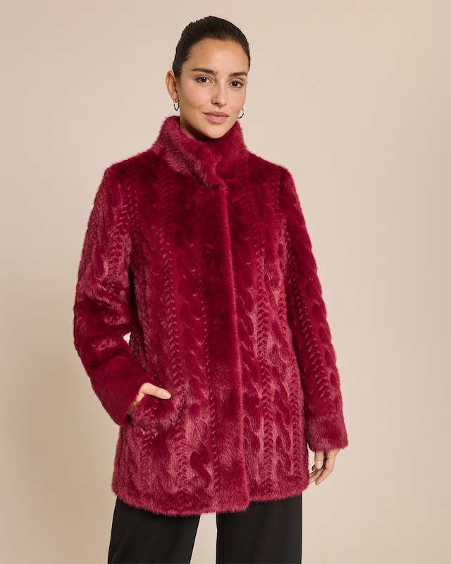 Exklusiver Hingucker – Webpelzmantel mit Strukturmuster