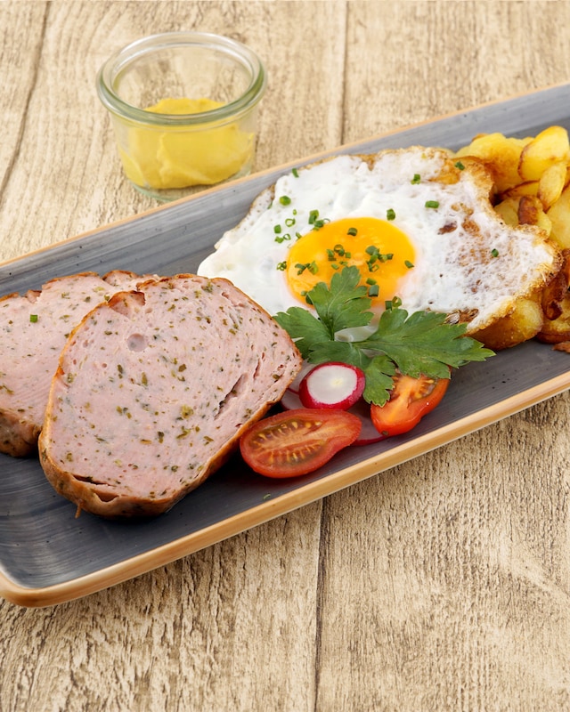 Der Frühlingsbote Bärlauch trifft auf den geschätzten deutschen Klassiker Fleischkäse: Entdecken Sie ein feines kulinarisches Zusammenspiel aus deftigem Fleischkäse mit den geschmacklichen Nuancen von Bärlauch, der Noten von Schnittlauch, Knoblauch und Zwiebeln mitbringt. Ein herzhafter Genuss, zum Beispiel mit Kartoffelsalat, frischen Brezen und Brötchen oder einem Spiegelei.