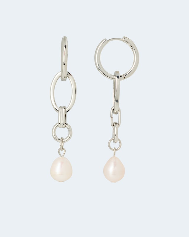 Die raffiniert gestalteten Ohrhänger aus Messing glänzen in kühl-eleganter Platin-Optik, in warm schimmernder Gelbgold-Optik oder in femininer Roségold-Optik - je nachdem, was Sie bevorzugen. Am Ohrläppchen sind Creolen befestigt. Darunter hängen beweglich weitere Ringe. Der unterste ist mit jeweils einer weißen Süßwasserzuchtperle in Tropfenform verziert. Verschlossen wird das edle Accessoire mit einem Klappverschluss. Durch die Länge des Ohrschmuck wird Ihr Hals betont und er wirkt länger und schlanker. Ein wundervoller Rahmen für Ihr Gesicht