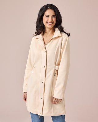 Stilvoller Übergangs-Look: charmante Longjacke in Velours-Optik