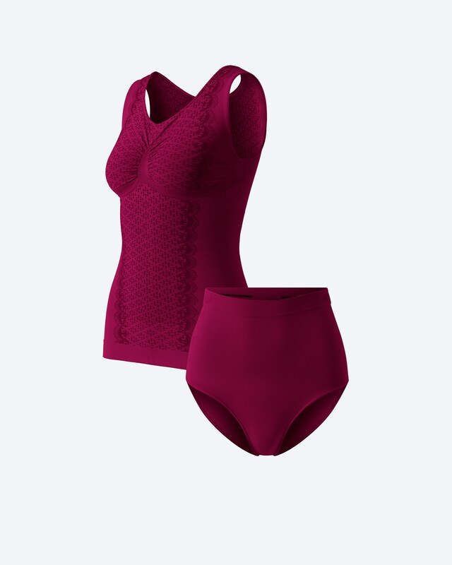 Dieses seidige Set aus Top und Bauchkontroll-Slip optimiert Ihre Figur im Handumdrehen. Das Top hat eine Push-up-Zone, die Ihren Busen perfekt formt und bequeme Komfortträger für besten Halt. Lästige Bügel sind nicht nötig. Das Top verführt mit einem eleganten eingestrickten Design, zaubert ein verführerisches Dekolleté und einen flachen Bauch. Der hoch geschnittene Slip ist mit einer verstärkten Bauchkontrolle ausgestattet, sitzt außerdem superbequem und zeichnet sich nicht ab.