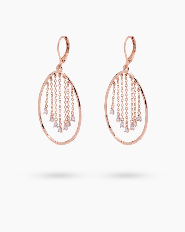 Mit diesem tollen Eyecatcher-Schmuck von Claris Vienna Jewelry Art wird Ihr Outfit perfekt. Durch das einfarbige Design lassen sich die Ohrhänger in langer, ovaler Form besonders gut kombinieren und harmonieren mit unterschiedlichsten Outfits. Im Inneren der Ovale sind je sieben Ketten in unterschiedlichen Längen befestigt, die mit einem Zirkonia-Tropfen in einer Krappenfassung enden. Die beweglichen Ketten machen jeden Ihrer Schritte dynamisch mit und geben den Accessoires einen attraktiven Glamour-Touch. Entscheiden Sie sich für die gelb-, rosévergoldete oder palladinerte Variante und freuen Sie sich drauf, den Schmuck zum ersten Mal zu tragen.