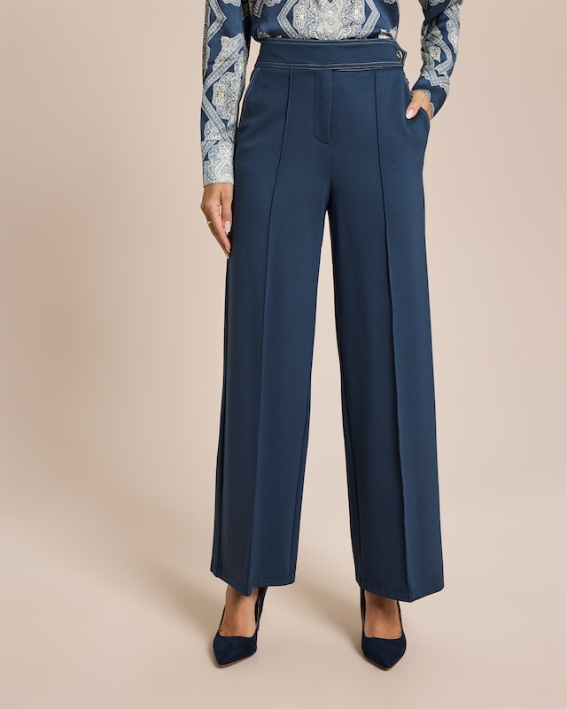 Lassen Sie sich von der Hose mit Zierstich verzaubern – ein Meisterwerk der Schneiderei. Die fließende Silhouette umschmeichelt Ihre Figur, während der elastische Teildehnbund auf Nabelhöhe für Komfort sorgt. Seitliche Eingriffstaschen und dekorative Faketaschen hinten verleihen dem Design eine raffinierte Note. Mit einer Innenbeinlänge von ca. 74,5 cm in Größe 38 und einem Größenlauf von 34-48 passt sie sich Ihrem Körper perfekt an. Die pflegeleichte Materialmischung macht sie zum idealen Begleiter für Ihren Alltag. Diese Hose ist mehr als ein Kleidungsstück – sie ist Ihr Statement für zeitlose Eleganz.