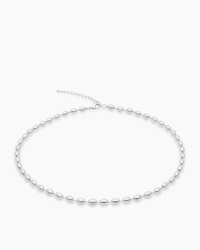 Von schlichter Eleganz, zugleich raffiniert im Design: Das Collier entzückt durch seine harmonische Gestaltung aus zahllosen gleich großen Kettenelementen in Form dreidimensionaler Ellipsen. Die Oberfläche des Messing-Colliers ist für eine besonders edle Optik sorgfältig hochglanzpoliert. Im kühl-eleganten Weißgold- oder sonnenwarmen Gelbgold-Look - also silberweiß palladiniert oder gelbvergoldet - zur Wahl.