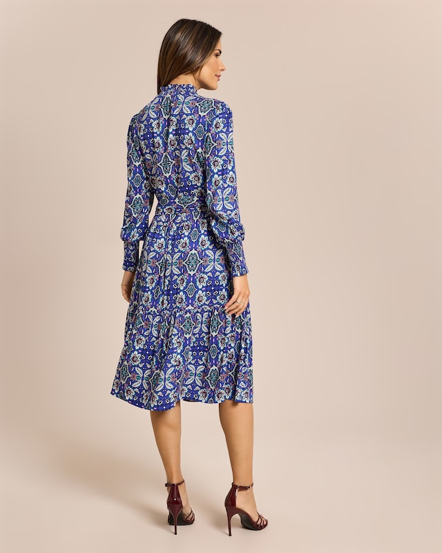 Blühendes Midi-Kleid mit raffinierter Ärmelraffung