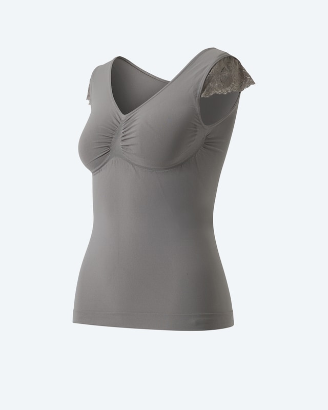 Das Leichttop aus besonders weichem Material mit leichtem Stützeffekt schmiegt sich soft an Ihre Figur und optimiert Ihre Kurven auf sanfte Art und Weise. Die Push-up-Zone verleiht Ihrem Busen jugendliche Formen und die Komfortträger bieten besten Halt- ohne einzuschneiden.und formt Ihre Figur ansprechend, sodass sich auch in enger Kleidung weder Röllchen noch ein Speckbauch abzeichnen. Das Top hat durch seine Bi-Elastizität einen perfekten Sitz von Körbchengröße A bis H und formt dank Push-up-Zone einen schönen Busen. Brustpolster und Bügel sind nicht nötig. Die breiten Komfortträger schneiden nicht ein und bieten besten Halt. Das Leichttop verfügt über einen Rundhalsausschnitt, der mit zarter, hochwertiger Spitze verziert ist.