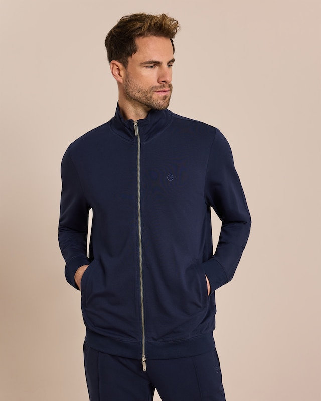 Lassen Sie sich von dieser Freizeitjacke umarmen. Der weiche Single Jersey-Stoff schmiegt sich angenehm an Ihren Körper und bietet dank des Elasthan-Anteils optimale Bewegungsfreiheit. Der praktische Reißverschluss und der schützende Stehkragen machen die Jacke zum perfekten Begleiter für kühlere Tage. Mit einer Rückenlänge von ca. 74 cm in Größe 52 sitzt sie ideal und lässt sich vielseitig kombinieren. Ob beim Entspannen zuhause oder beim Spaziergang - diese Jacke ist Ihr neuer Liebling für entspannte Momente.