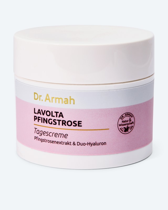 Die Lavolta Pfingstrose Tagescreme mit Pfingstrosen-Extrakt kann den sichtbaren Zeichen der Hautalterung entgegenwirken und einen wunderschönen, strahlenden Teint verleihen. Enthaltener Pfingstrosen-Extrakt unterstützt die Erneuerungsprozesse der Haut und kann bei regelmäßiger Anwendung Hautrötungen sowie Unregelmäßigkeiten in der Pigmentierung mildern. Die Kombination aus hoch- und niedermolekularer Hyaluronsäure wirkt sogar in tieferen Hautschichten aufpolsternd. Die Haut erscheint frischer und Trockenheitsfältchen werden optisch reduziert.