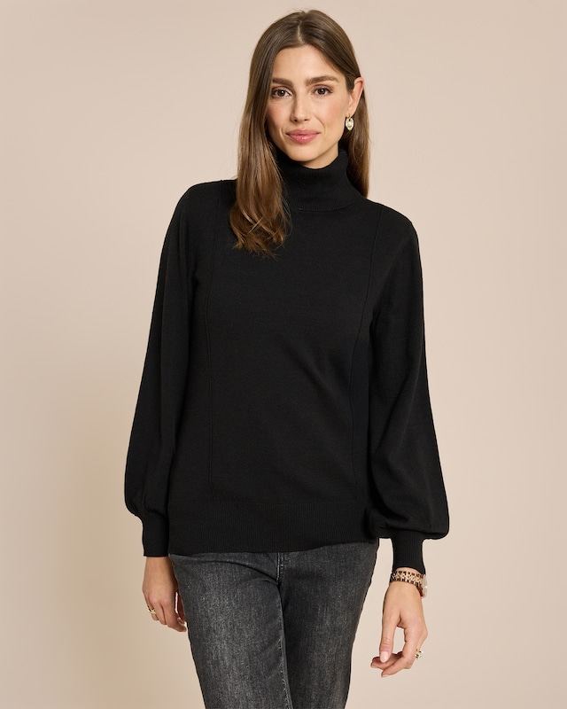 Stilvoller Rollkragenpullover mit raffiniertem Piping