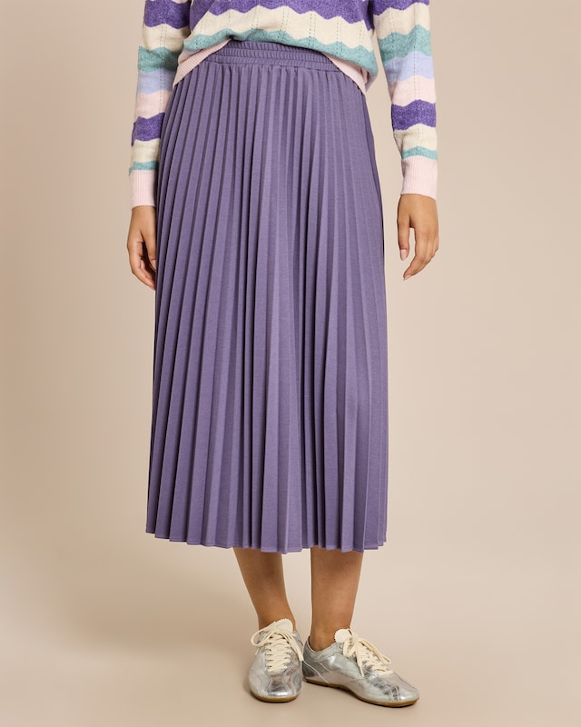 Dieser Rock verzaubert mit seiner fließenden Silhouette. Die feinen Plisseefalten umspielen sanft Ihre Figur und verleihen jedem Outfit eine feminine Note. Dank des elastischen Bundes gleitet er mühelos über die Hüften und sitzt den ganzen Tag angenehm. Die Maxilänge von ca. 85 cm lässt sich vielseitig kombinieren - ob mit flachen Schuhen für einen lässigen Look oder mit Absätzen für einen eleganten Auftritt. Das pflegeleichte Material macht den Rock zum idealen Begleiter für Ihren Alltag. Ein Hauch von Raffinesse für jede Garderobe.