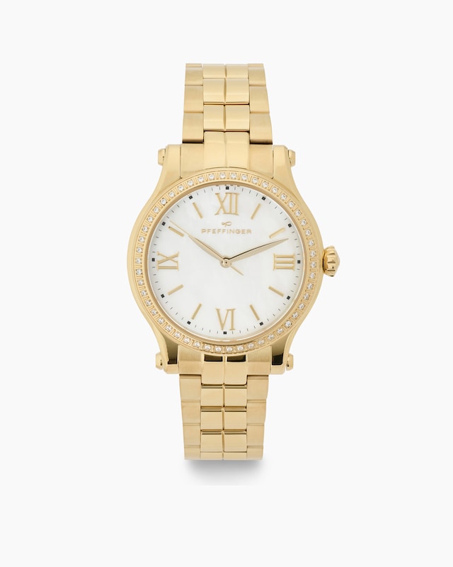 Die edle Uhr aus dem Hause Pfeffinger ist im wahrsten Sinne des Wortes ein Schmuckstück. Sie bereichert Ihr Zeitmanagement und Ihre Garderobe. Für den edlen Look sind nicht zuletzt 48 weiße Diamanten im Achtkantschliff zuständig. Dank der zeitlos modernen Kombination mit IP-beschichtetem Edelstahl wirkt die Uhr sportlich und elegant zugleich. Sie kann unisex getragen werden und ist an jedem Handgelenk ein funkelnder Blickfang. So passen Diamanten perfekt in den Alltag und verleihen jedem Blick auf die Uhr ein Strahlen.