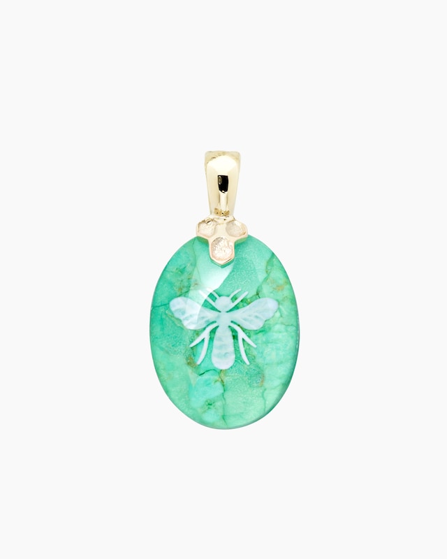 Wenn außergewöhnliche Edelsteine zu Ihren Leidenschaften zählen, dann dürfte Sie dieser originelle Schmuckanhänger aus der Linie "Sogni d'oro Classic" interessieren. Er besteht aus einer ovalen Türkis-Bergkristall-Dublette im Cabochonschliff mit faszinierender Bienengravur. Mit einem Clip aus 375er Gelbgold im Hochglanzfinish lässt sich der glatte Anhänger einfach in Ihre Halsketten einhängen. Dabei dürfen Sie sich auf ganze 12 Karat freuen.