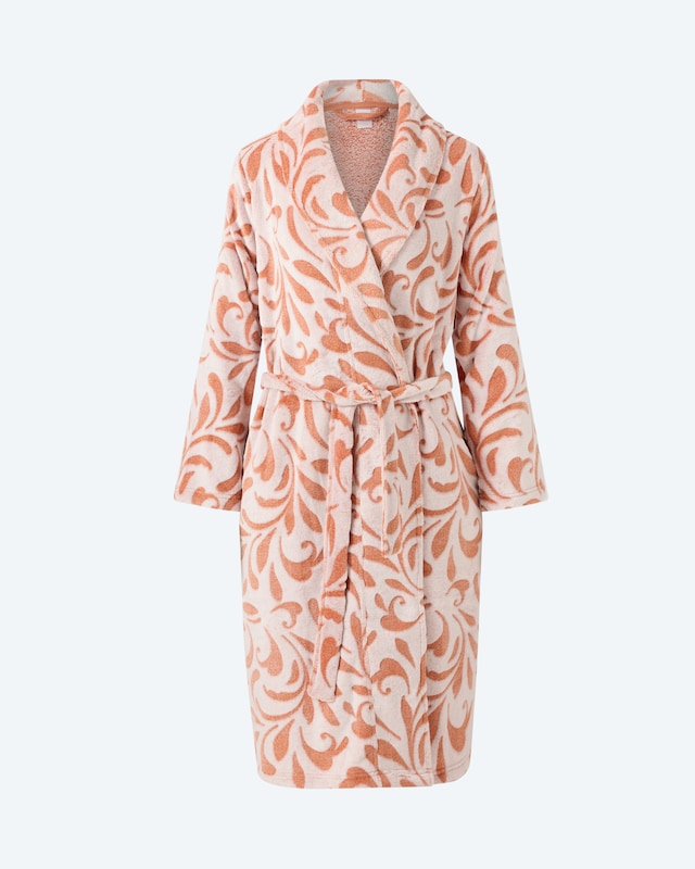 Hüllen Sie sich in den luxuriösen Komfort unseres wunderschönen Bademantels "Elegance". Mit einem modischen Ornamentdruck und Ombreeffekt ist dieser Bademantel ein echter Hingucker. Der Schalkragen und der Bindegürtel sorgen für Chic und eine individuelle Passform, während die seitlichen Eingriffstaschen praktische Funktionalität hinzufügen. Aus der Mikronesse Linie "Cashmahimmel" gefertigt, ist dieser Bademantel wunderbar weich und warm - perfekt für gemütliche Morgen oder entspannende Abende zu Hause. Verwandeln Sie Ihr Badezimmer in eine private Wellness-Oase mit diesem eleganten Bademantel.