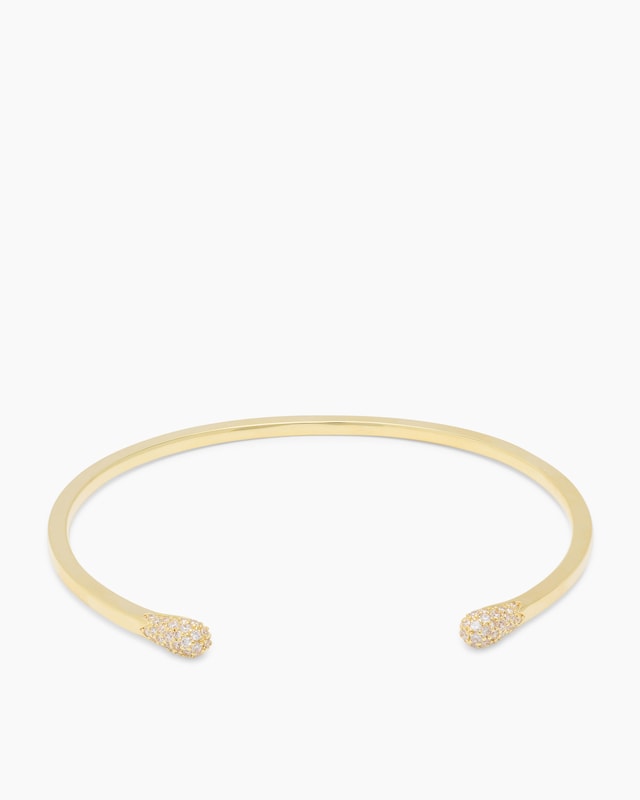 Mit diesem Armreif liegen Sie immer richtig: Das Accessoire in moderner und sehr eleganter Optik passt wie angegossen zu jedem Outfit. Der Armreif ist jeweils an den Enden mit insgesamt 68 weißen Zirkonia in zwei verschiedenen Größen ausgefasst. Treffen Sie Ihre Wahl zwischen zwei Größen und zwei Legierungen - silberweiß rhodiniert oder gelbvergoldet -, so findet sich für jedes Handgelenk und jeden Geschmack genau der richtige Armreif.