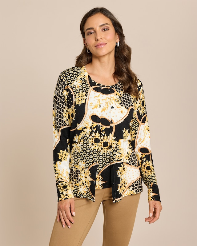 Stilvolles Twin-Set mit faszinierendem Druckmix