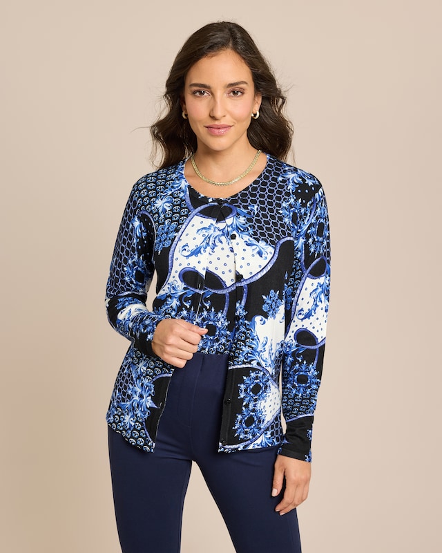 Stilvolles Twin-Set mit faszinierendem Druckmix