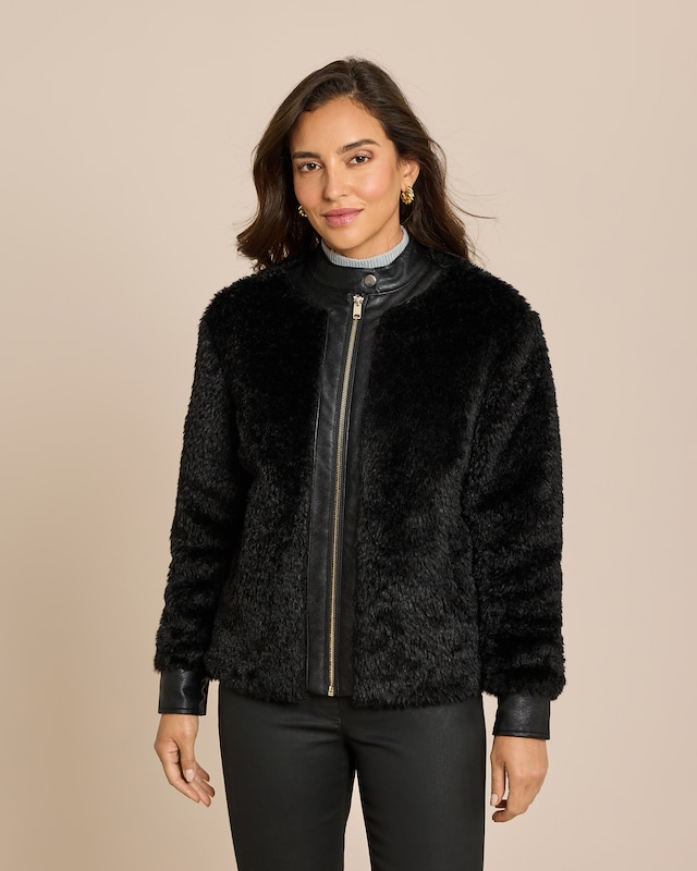 Luxuriöse Felljacke mit Lederimitat-Details