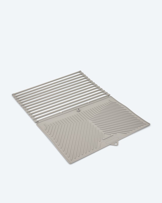 Entdecken Sie dieses vielseitige Duo aus Spülbecken- & Abtropfauflage: Das Set besteht aus einem Edelstahl-Abtropfgitter und einer Silikonmatte. Es passt sich Ihren Bedürfnissen ganz an und ist ein praktisches Add-on für jede Küche. Nutzen Sie beide Teile einzeln oder kombiniert – platzsparend, zusammenrollbar und leicht zu reinigen. Das Gitter mit rutschfesten Gummifüßen ist ideal für heiße Töpfe oder zum Auftauen. Die hitzebeständige Silikonmatte mit innovativem Ausgussmechanismus lässt Wasser per Knopfdruck abfließen. Robust, spülmaschinenfest und hitzebeständig schützt sie Ihre Arbeitsplatte vor Kratzern und Flecken. Praktisch, langlebig, unverzichtbar.