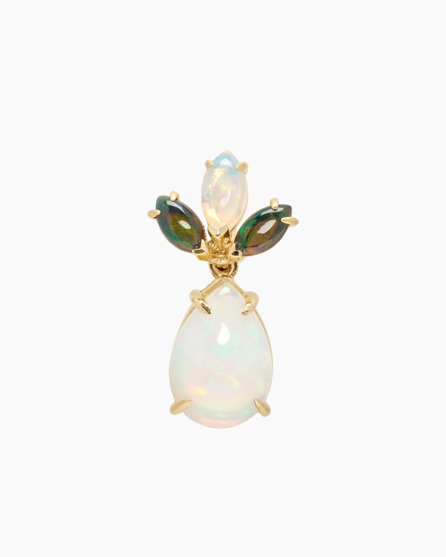 Mit seinen geheimnisvoll oszillierenden Kristallopalen ist dieser Anhänger ein echtes Prachtstück. Das elegante Design enthält zwei weiße und zwei grüne Steine in unterschiedlichen Größen und Formen, die je nach Lichteinfall faszinierende Lichteffekte auf Ihr Dekolleté zaubern. In perfekter Harmonie dazu steht der warme Glanz des verarbeiteten Gelbgoldes (375). Ob zu besonderen Anlässen oder jeden Tag getragen - an diesem Edelsteinschmuck werden Sie immer wieder Freude haben.