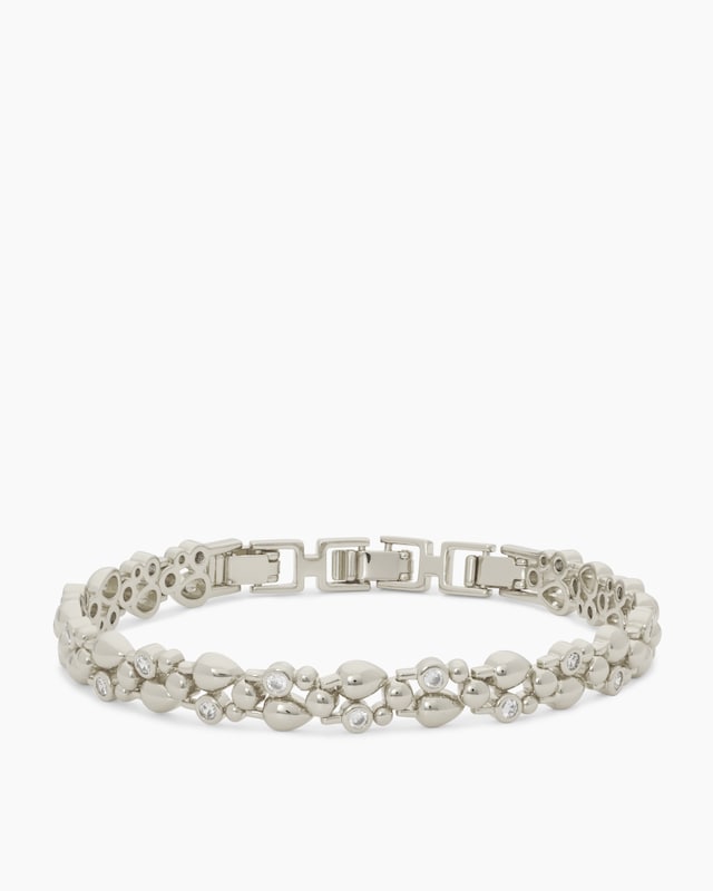 Zarte Tropfen und Kugeln in verschiedenen Größen sitzen, zum Teil mit Zirkonia besetzt, dicht an dicht und bilden ein Band, das Ihr Handgelenk sanft umschmeichelt. Das Armband von Helena Vera ist ein Hingucker wie er im Buche steht. Das bezaubernde Schmuckstück ist wahlweise gelbvergoldet oder palladiniert und wirkt opulent und luftig zugleich. Der Klappverschluss mit 2 Easy-Links geht optisch nahtlos in das Armband über und sorgt dafür, dass Sie es in Ihrer Lieblingsweite tragen können. Geben Sie Ihren Gesten ein Plus des gewissen Etwas.