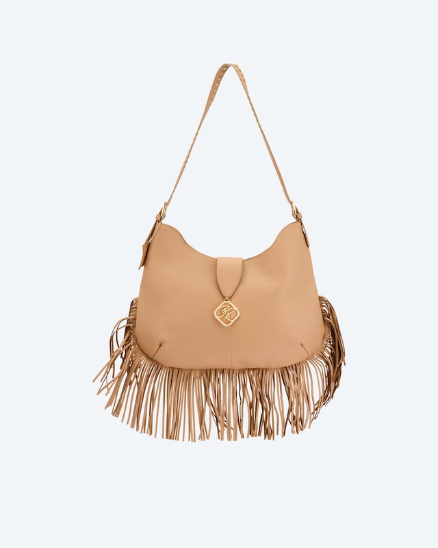 Lederbeuteltasche mit Fransen