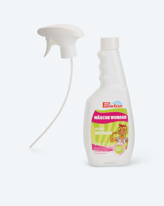 Der Wäsche Wunder Textilerfrischer von Pastaclean sorgt für frisch duftende Wäsche während des Waschgangs und kann Kleidung und Textilien auffrischen. Außerdem entfernt er Schweiß-, Rauch-, Küchen-, Tiergerüche und andere unangenehme Ausdünstungen aus Kleidung, Gardinen, Heimtextilien, Wohntextilien und Polstermöbeln. Auch im Wohnwagen, Van oder Auto können Sie den Textilerfrischer verwenden. Das Spray neutralisiert unangenehme Gerüche dauerhaft und ist auch perfekt geeignet für den gewerblichen Einsatz in Hotels, Gastronomie Pflegeeinrichtungen, Tierpensionen, Entsorgungsbetrieben und der Autoaufbereitung.