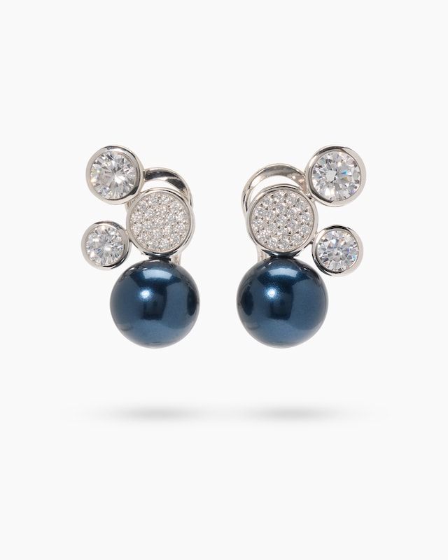 Elegante Ohrclipstecker mit Muschelkernperlen und Zirkonia