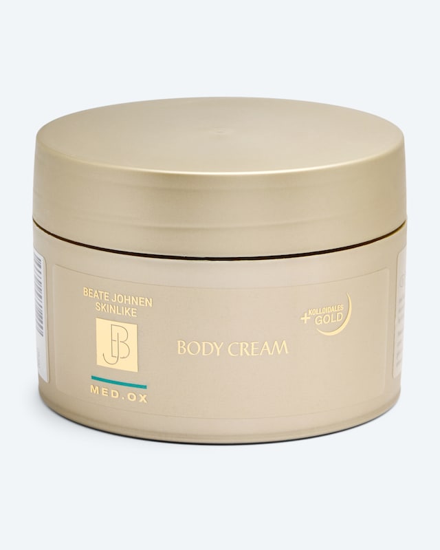 Die Beate Johnen Skinlike MED.OX Firming & Refining Body Cream Gold Edition vermindert optisch die Sichtbarkeit kleiner Dellen und Unebenheiten und schafft so ein merklich strafferes und verbessertes Hautbild. Innovative Wirkstoffe versorgen die