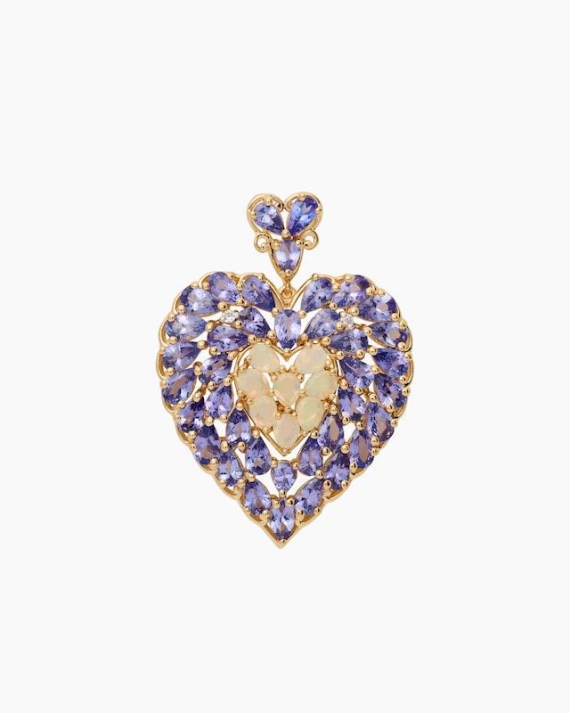 Ein Herz aus Edelsteinen: Dieser wundervolle Anhänger aus der Harry Ivens Kollektion ist mit 39 tropfenförmigen Tansaniten (AAAA) ausgefasst. In tollem Kontrast zu den geheimnisvoll blau-violetten Steinen stehen acht mittige, magisch oszillierende Opale. Zwei kleine runde Zirkone an der Öse machen das Edelstein-Ensemble perfekt. Ein bezaubernder Blickfang für jedes Dekolleté, der sich dank seiner symbolstarken Form auch ideal als Geschenk eignet. Gefertigt aus gelbvergoldetem Sterlingsilber (925).
