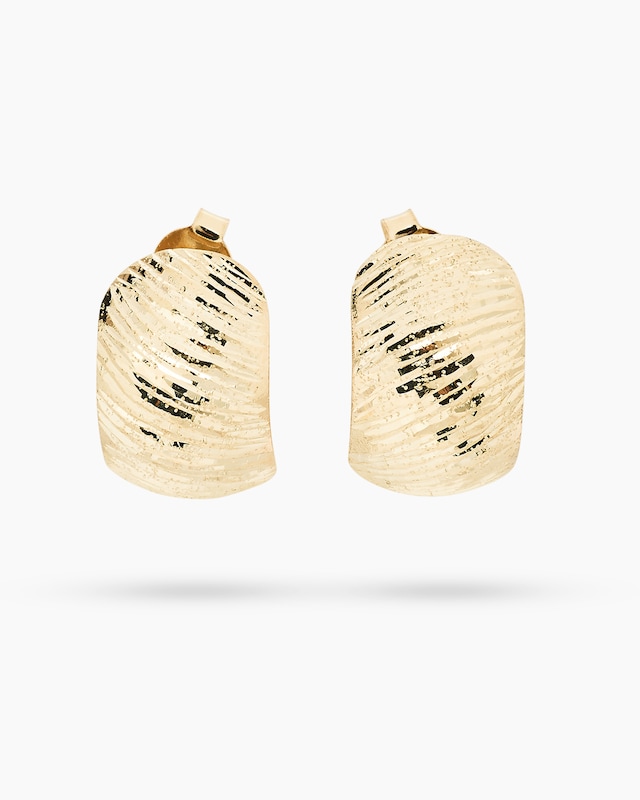 Ein ganz besonderes Creolen-Design gönnen Sie sich mit diesem Ohrschmuck aus purem Gelbgold (375). Die eleganten Ohrstecker sind als Halbcreolen designt und mit feinen Diamantschnitten versehen, die in harmonischem Schwung über die Oberfläche laufen. Für zusätzliche Lichteffekte sorgen weitere zarte Schnitte. So entsteht ein zeitlos eleganter Schmuck, der feminine Outfits ebenso akzentuiert wir modische Looks.
