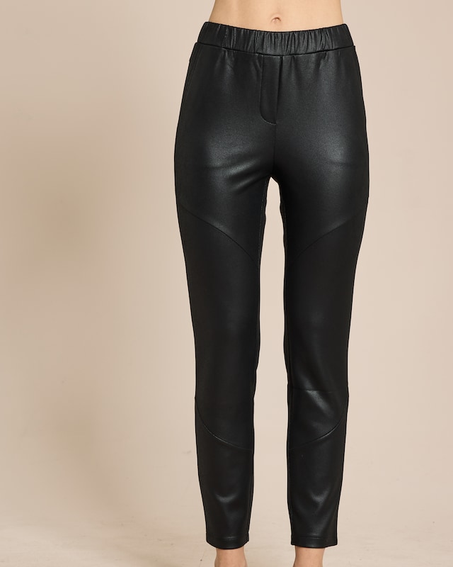 Lassen Sie sich von der Eleganz dieser Hose verzaubern. Die schmale Passform umschmeichelt Ihre Beine gekonnt und sorgt für eine feminine Silhouette. Der elastische Schlupfbund sitzt angenehm auf der Taille, ohne einzuengen. Die edle Velourslederoptik mit dezenter Prägung verleiht dem Kleidungsstück eine besondere Raffinesse. Mit einer Innenbeinlänge von 66,5 cm in Größe 38 ist die Hose vielseitig kombinierbar. Ob im Büro oder beim Abendessen - diese Hose ist Ihr perfekter Begleiter für einen stilvollen Auftritt.