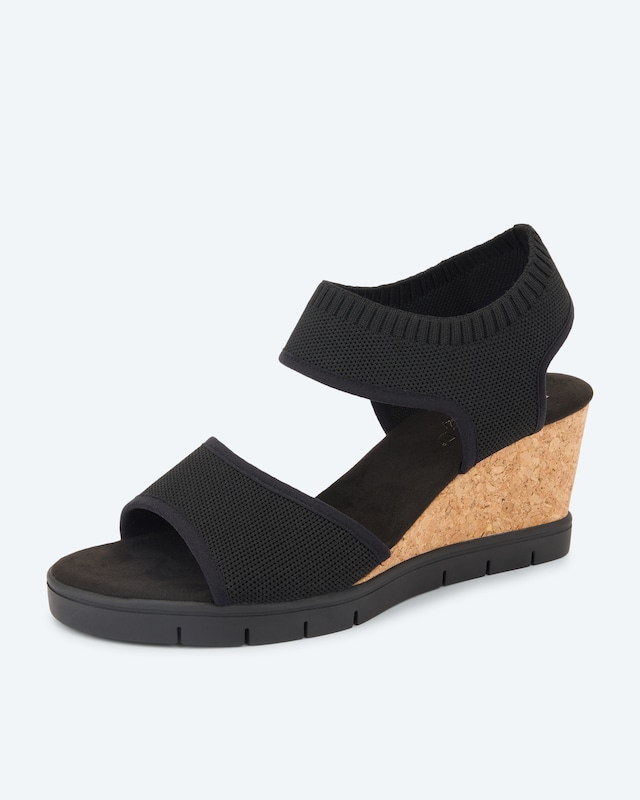 Luftig-leicht und federnd weich umschmeicheln diese Keilsandalen Ihre Füße. Der elastische Strick-Einsatz passt sich perfekt an und sorgt für müheloses An- und Ausziehen. Der 7,5 cm hohe Korkabsatz verleiht Ihnen einen eleganten Auftritt, während die Memory Foam Innensohle Ihre Schritte sanft abfedert. Die rutschhemmende TPR-Sohle gibt sicheren Halt auf jedem Untergrund. In der Weite G bieten diese Sandalen reichlich Platz für Ihre Füße. Ob zum sommerlichen Kleid oder zur luftigen Leinenhose - diese vielseitigen Begleiter machen jedes Outfit zum Hingucker.