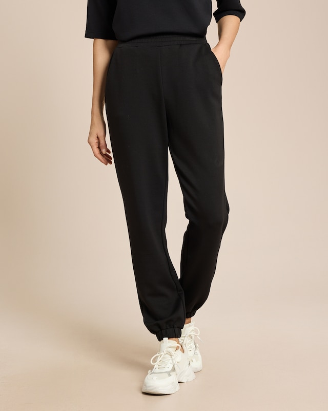 Verwöhnen Sie sich mit purer Behaglichkeit. Die Relaxflex Hose umschmeichelt Ihre Beine mit weichem Scuba-Material und bietet dank des weiten Schnitts grenzenlose Bewegungsfreiheit. Der elastische Bund mit Tunnelzug passt sich perfekt Ihrer Figur an, während die französischen Taschen praktischen Stauraum bieten. Mit einem Gummizug am Saum lässt sich die Länge individuell anpassen - ideal für entspannte Stunden zu Hause oder einen lässigen Stadtbummel. In dieser Hose fühlen Sie sich rundum wohl, egal ob Sie sich ausruhen oder aktiv sind.