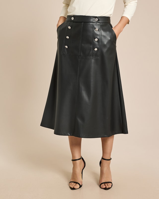 Edler Midi-Rock in Lederoptik mit dekorativen Details
