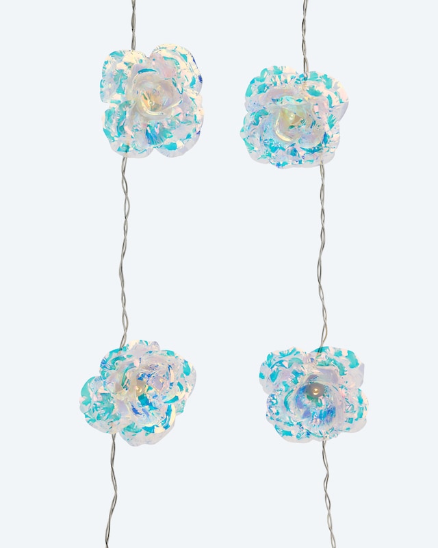 • LED-Lichterkette mit 20 künstlichen Regenbogenrosen-Blüten