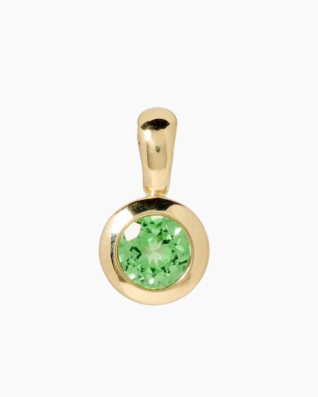 Aus den saftig-grünen Merelani-Hügeln im Grenzgebiet zwischen Tansania und Kenia stammt der einzigartige Tsavorit auf diesem Anhänger. Der runde Edelstein entzückt durch sein intensiv leuchtendes, sehr intensives Grün. Komplett facettiert, erzeugt der Stein bei jedem Lichteinfall faszinierende Funkel-Effekte. Das Design ist bewusst schlicht gehalten, damit der Tsavorit optimal zur Geltung kommt.
