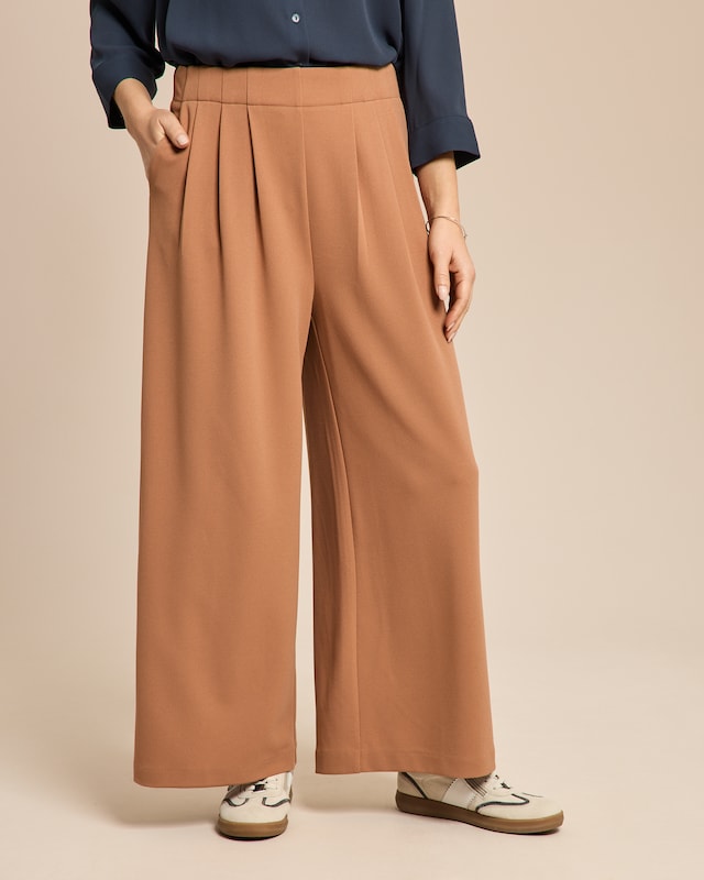 Fließende Eleganz und moderner Komfort vereinen sich in dieser Hose. Die innovative Techno-Stretch-Qualität umschmeichelt Ihre Figur und bietet dabei maximale Bewegungsfreiheit. Vordere Bundfalten und ein elastischer Bund sorgen für eine feminine Silhouette und angenehmen Tragekomfort. Französische Taschen vorne und Paspeltaschen hinten runden das Design stilvoll ab. Die dezente THOM-Logoplakette über der linken Gesäßtasche setzt einen edlen Akzent. Ob im Büro oder in der Freizeit - diese Hose ist Ihr verlässlicher Begleiter für einen souveränen Auftritt.