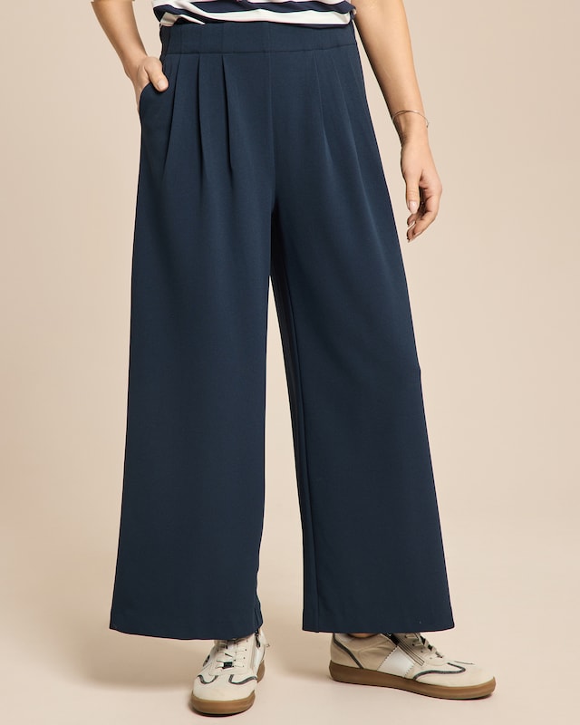 Fließende Eleganz und moderner Komfort vereinen sich in dieser Hose. Die innovative Techno-Stretch-Qualität umschmeichelt Ihre Figur und bietet dabei maximale Bewegungsfreiheit. Vordere Bundfalten und ein elastischer Bund sorgen für eine feminine Silhouette und angenehmen Tragekomfort. Französische Taschen vorne und Paspeltaschen hinten runden das Design stilvoll ab. Die dezente THOM-Logoplakette über der linken Gesäßtasche setzt einen edlen Akzent. Ob im Büro oder in der Freizeit - diese Hose ist Ihr verlässlicher Begleiter für einen souveränen Auftritt.