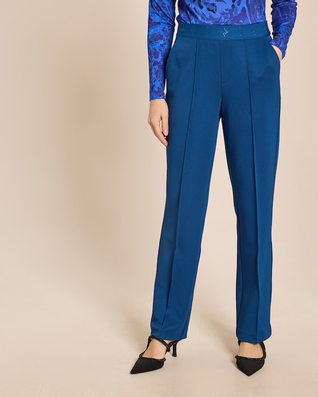 Mühelos von Tag zu Abend - diese Schlupfhose ist Ihr neuer Alltagsbegleiter. Der elastische Logobund sitzt angenehm unter der Taille und sorgt für Bewegungsfreiheit. Dank des schmalen Schnitts und geraden Beins wirken Ihre Beine optisch länger. Praktische Einschub- und Paspeltaschen runden das Design ab. Die pflegeleichte Hose aus Wirkware passt sich Ihren Bewegungen an und knittert kaum. Ob im Büro oder beim Einkaufsbummel - diese Hose macht immer eine gute Figur.