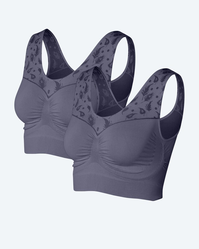 Lassen Sie sich von unserem Bustier mit Federdesign verzaubern. Die sanfte Stützkraft umschmeichelt Ihre Figur, während breite Träger für ganztägigen Komfort sorgen. Das eingestrickte Feder-Muster verleiht Ihnen eine feminine Note. Mit dem Rundhalsausschnitt und der PU-Zone im Brustbereich genießen Sie optimalen Halt. Dieses Doppelpack ist Ihr treuer Begleiter für jeden Anlass - vom Büroalltag bis zum Abendessen. Entdecken Sie die perfekte Symbiose aus Funktion und Ästhetik.