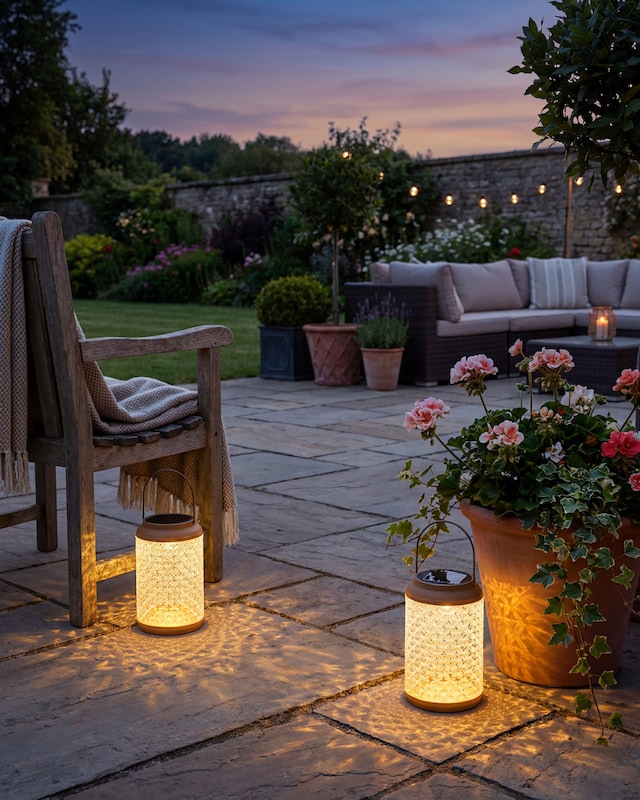 Zwei stimmungsvolle Solar-Laternen für Garten & Balkon