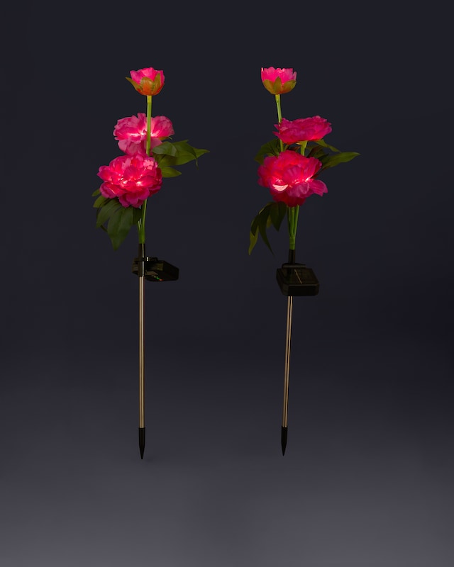 Zwei stimmungsvoll leuchtende Solar-Pfingstrosen für Garten & Balkon