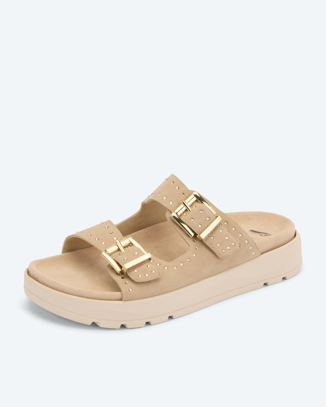 Schimmernde Strasssteine verleihen dieser Pantolette von Caprice einen Hauch von Glamour für jeden Tag. Das weiche Ziegenveloursleder umschmeichelt Ihren Fuß, während die Memory Foam Sohle für ein Gefühl wie auf Wolken sorgt. Dank der verstellbaren Klettriegel mit dekorativen Schnallen finden Sie stets den perfekten Sitz. Die robuste TPR-Sohle bietet sicheren Halt. Mit einer Absatzhöhe von 3 cm und der Weite G schenkt diese Pantolette Ihnen Eleganz und Tragekomfort in einem. Verwöhnen Sie Ihre Füße mit diesem Sommerschuh, der Stil und Bequemlichkeit meisterhaft vereint.