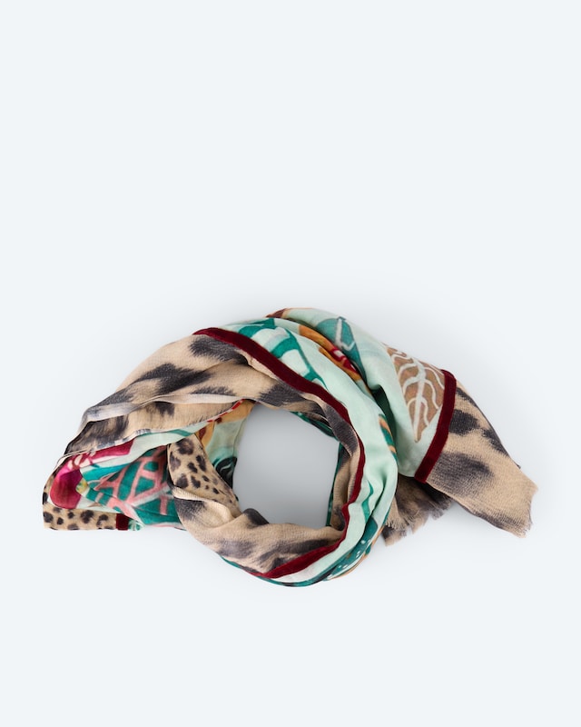 Schal, Alloverdruck mit Samtbordüre