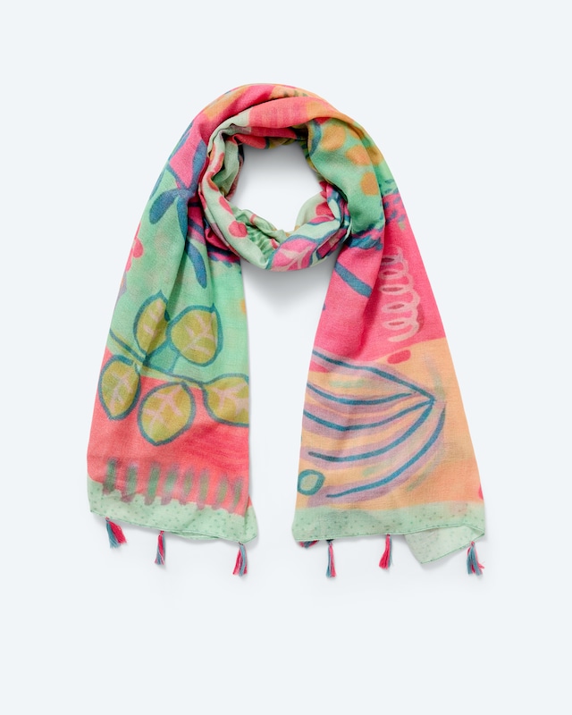 Dieser Schal verzaubert mit seinem lebendigen Korallenmotiv und bringt einen Hauch von Meeresfrische in Ihren Alltag. Das großzügige Format von 180x100 cm umschmeichelt Ihre Schultern und bietet vielfältige Stylingmöglichkeiten. Die dekorativen Fransen an den Enden verleihen dem Accessoire eine verspielte Note. Aus einer angenehmen Mischung aus Polyester und Viskose gefertigt, schmiegt sich der Schal sanft an Ihre Haut und ist dabei pflegeleicht. Ein Blickfang, der Ihre Garderobe mit einem Stück Urlaubsfeeling bereichert.