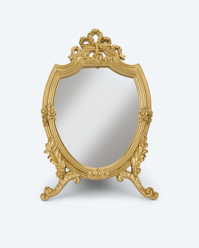 Aus dem Kreativ-Studio von Alfredo Pauly kommt dieses zauberhafte Deko-Accessoire, perfekt für Ihren Nacht- oder Schminktisch. Der Rahmen aus robustem Resin ist im goldfarbenen Barock-Stil gestaltet - ein typisches Designerstück von Meister Pauly. Verwenden Sie den Tischspiegel, um sich für den Tag oder die Nacht fertig zu machen. Auch zum Anlegen von Schmuck oder zum Schminken können Sie ihn verwenden. Machen Sie sich mit dieser femininen Deko-Idee selbst eine Freude. Oder Sie schenken ihn einem Lieblingsmenschen mit Sinn für geschmackvolle Accessoires.