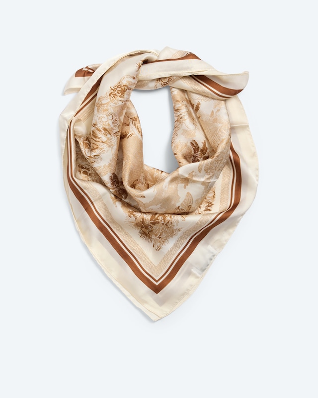 Lassen Sie sich von diesem bezaubernden Tuch in eine Welt voller Farben entführen. Der faszinierende Druckmix verleiht Ihrem Outfit eine unverwechselbare Note. Mit seiner luftigen Textur und der perfekten Größe von 70x70 cm schmiegt es sich angenehm um Ihren Hals oder Ihre Schultern. Ob als stilvoller Akzent zum Blazer oder lässig über der Bluse drapiert – dieses Accessoire ist Ihr treuer Begleiter für jeden Anlass. Seine geraden Kanten sorgen für einen cleanen Look, während das leichte Gewicht von nur 35 Gramm für höchsten Tragekomfort sorgt. Ein Hauch von Raffinesse für Ihren Alltag.