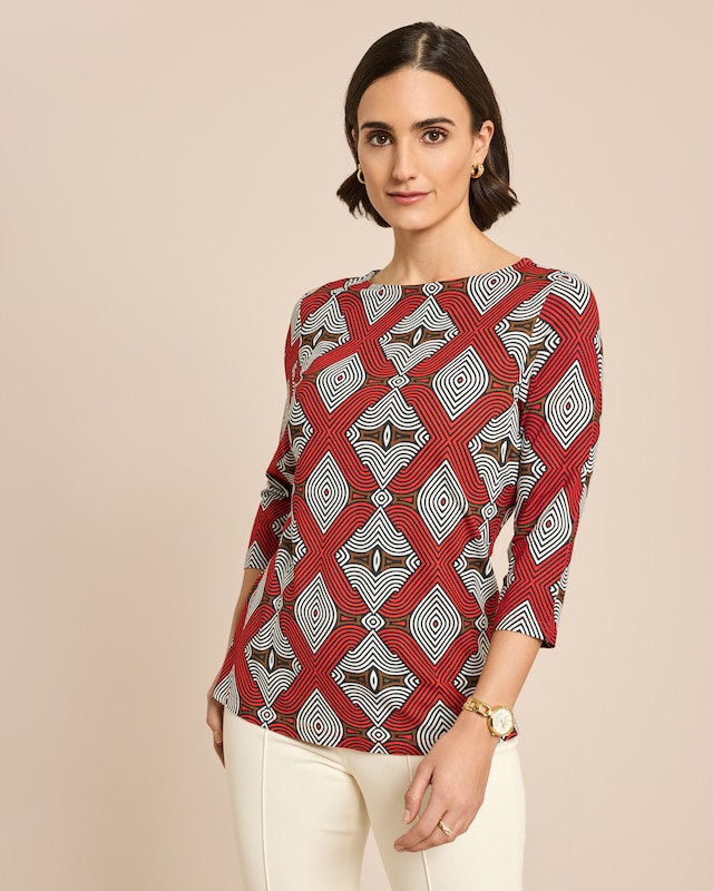 Stilvolles Muster-Shirt mit U-Boot-Ausschnitt